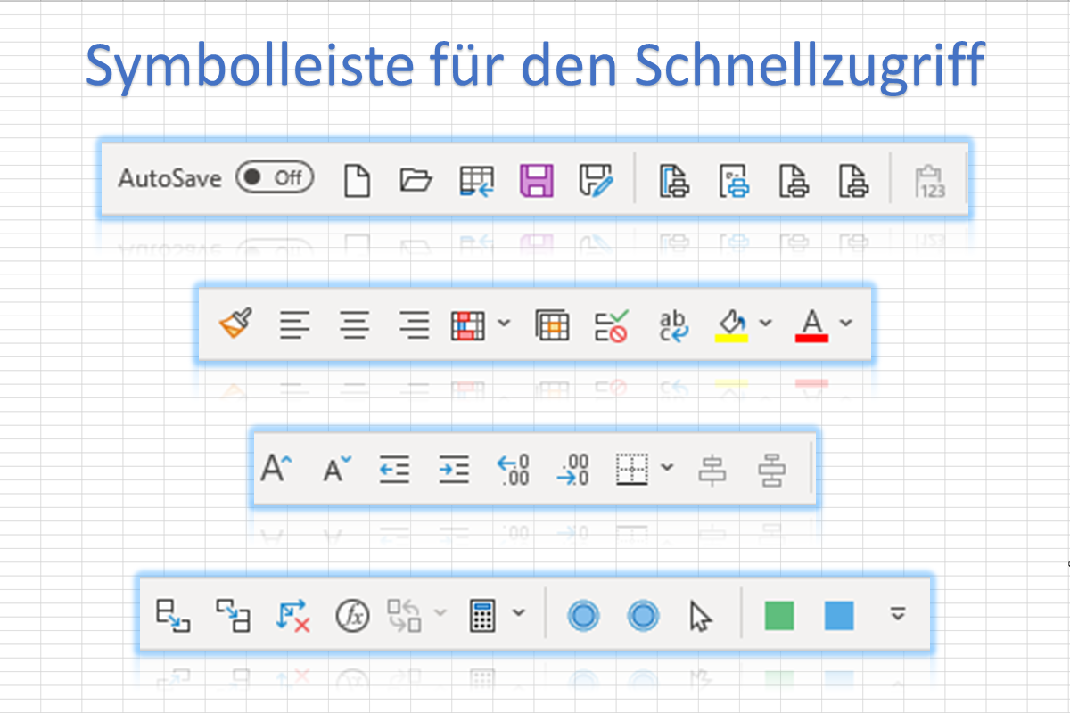 Dies ist eine schmale Symbolleiste mit kleinen Aufgabensymbolen, die standardmäßig oberhalb des Excel-Menübandes erscheint und etwa so aussieht.