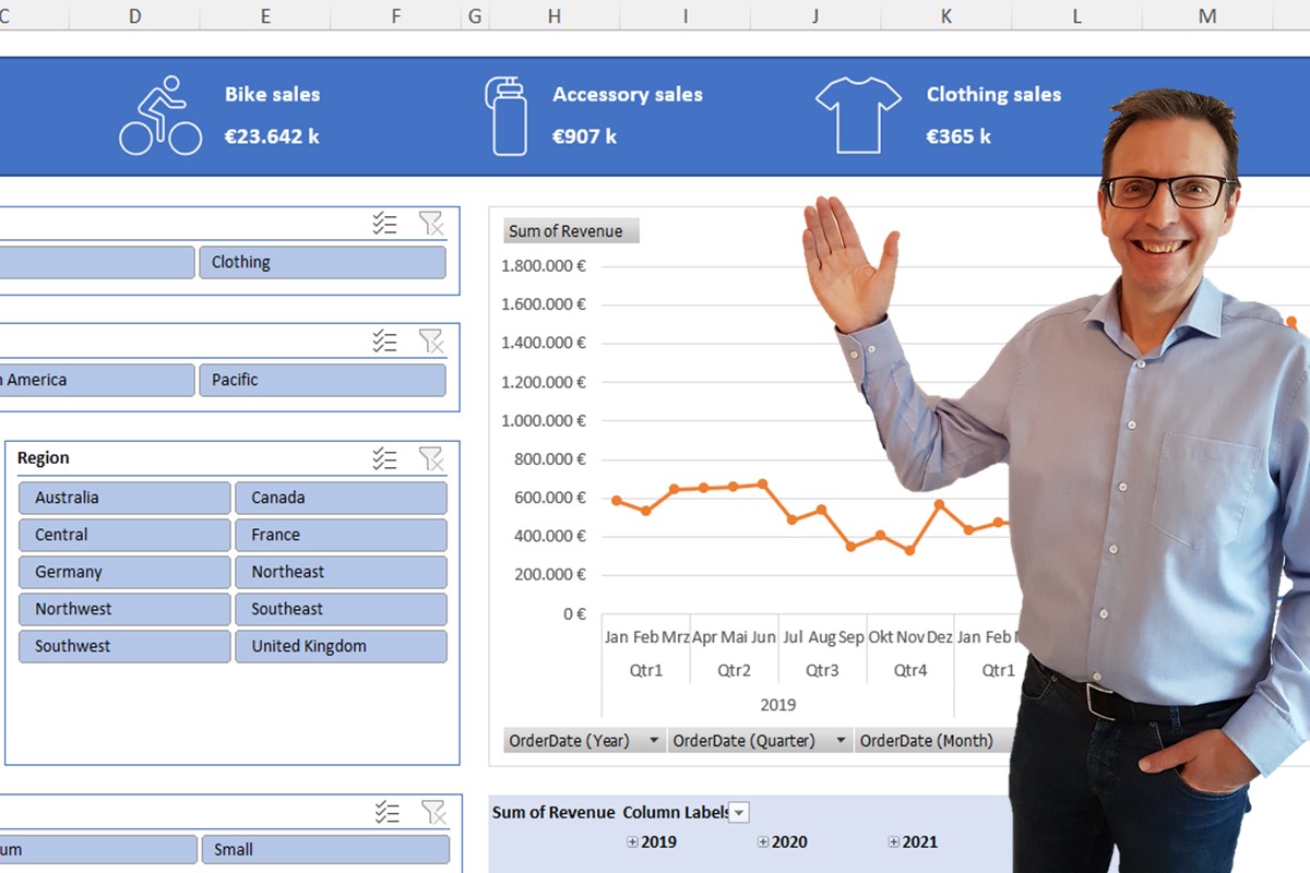 You can easily add icons, stickers, illustrations and more to your Excel file. You can use these to spice up your dashboards to show an icon next to key output figures such as “Bike sales”.